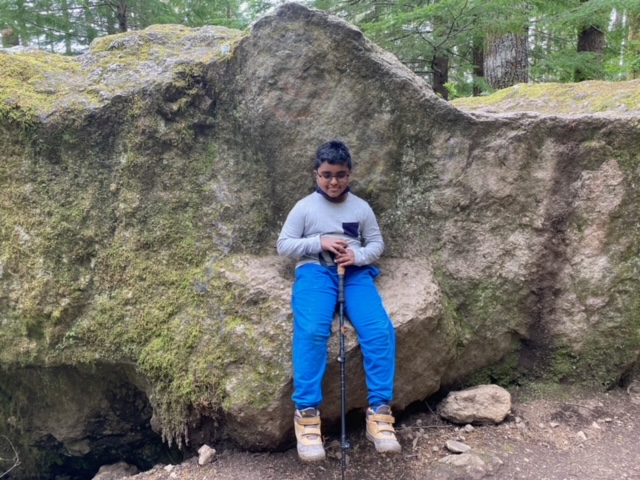 We continued on to find another rock, crowned with moss. It had a seat etched into the rock. Pretending it was a throne, my oldest son took a seat. āIām sitting here to rest. Kings need their rest,ā he said.