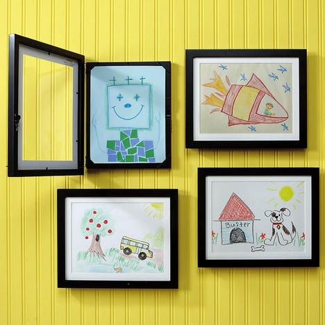 3. Go pretty in plastic. The durability, ease, and casual style of these heavy-duty plastic page protectors make them a great way to display art in kids' rooms. With grommets already in place for easy hanging and thick, durable plastic that will stand up to tiny hands, your kids will have a ball creating a dynamic gallery of their favorite work.