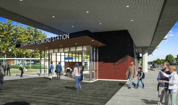 Downtown Redmond station entrances will be located on both sides of 166th Avenue NE. (Image courtesy Sound Transit)