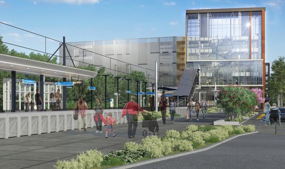 The Marymoor Village Station platform and parking garage on NE 70th Street. (Image courtesy Sound Transit)