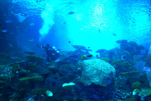 The Aquarium continues its popular diver talks in the Ocean Pavilion. Visitors also get an up-close view of staff feeding the rays from a third-floor walkway. This huge reef has five viewing windows, the largest window 23 feet tall. The multi-story reef ranges from 7 feet to 27 feet deep, and you’ll see different species at different heights.