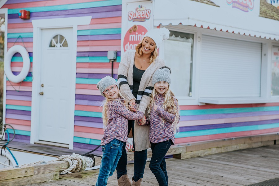 Featuring rainbow-filtered photos of her family in envy-inspiring locations, Smith is self-admittedly a contributor to “the notorious highlight reel on social media.” She finds more value in sharing the positive moments than reflecting on the negative. “We all have tough, dark days, especially as parents, but I feel it’s my role as a content creator to promote optimistic outcomes and focus on the good. The energy you exude is the energy you receive,” says Smith.