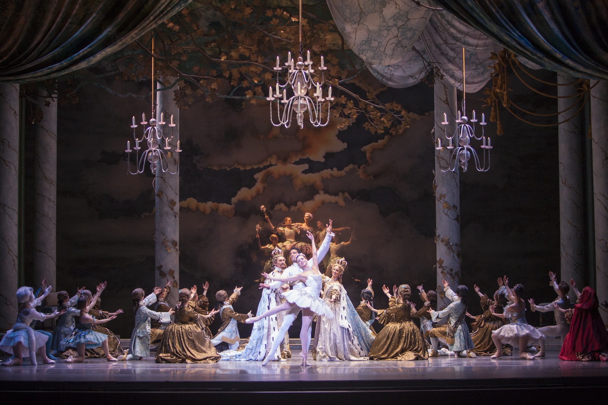 Photo credits: Pacific Northwest Ballet company dancers; Jonathan Porretta as the wicked fairy Carabosse and Laura Tisserand as the Lilac Fairy; Princess Aurora (Lesley Rausch) with Maria Chapman and Otto Neubert; Sarah Ricard Orza and Kiyon Gaines as the White Cat and Puss in Boots. Photos © Angela Sterling.