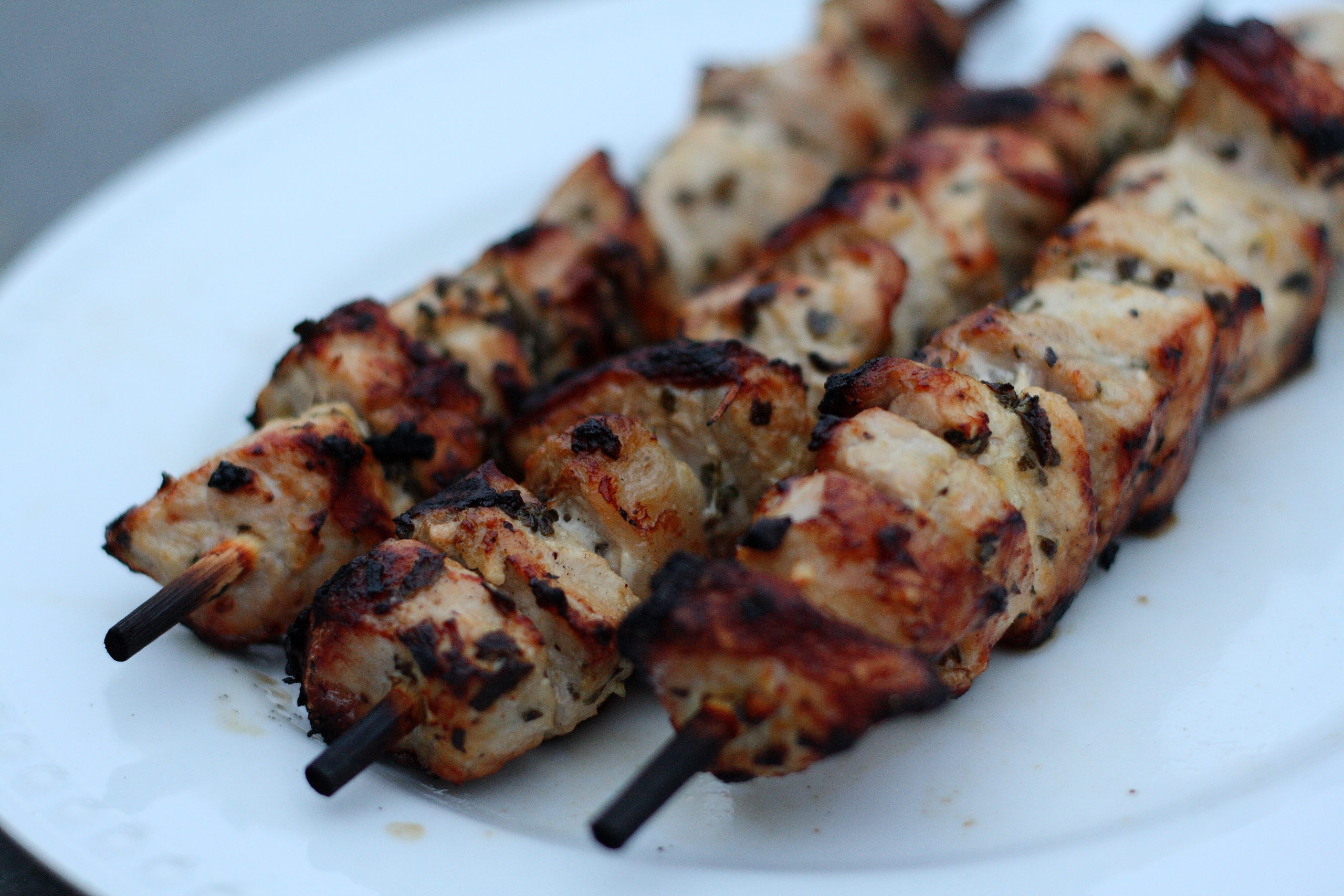 Souvlaki can be made with any meat, but lamb and chicken are the favorites in my house. These skewers are flavored with a traditional Greek marinade of lemon, garlic and oregano, and cook on the grill in about the time it’ll take you to warm your pita and make an easy tzatziki sauce.