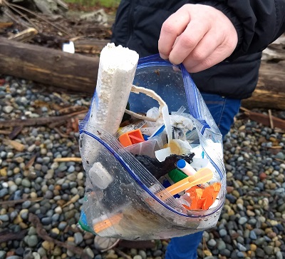 I met Molly Kongslie andĀ her mother, Wende Duffy, as they were working their way up Lincoln Beach, picking up plastic garbage, in the company of their dog, Callie. They had a large haul, including several needles. They collect garbage on this stretch regularly.Ā Kongslie said that needles had been showing up regularly on this stretch of beach for the past two years. She worries about Callie stepping on one.
