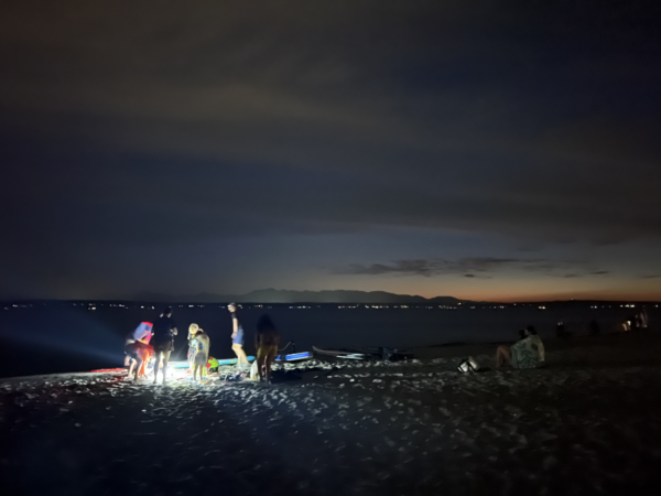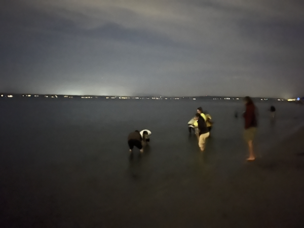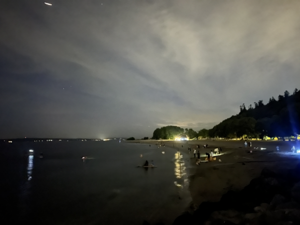 Water agitation can be achieved in many ways: wading into the water a few feet and gently stirring it with a hand, stirring it with a stick or paddle from the shore, or even using a cup or squirt bottle to splash water over the surface. Remember that most bioluminescence in Puget Sound is not a bright glow visible from a distance but relatively tiny confetti-like sparkles that dance around in the water during agitation. The best viewing spots are usually knee-deep or further in the water, so don’t be afraid to get in and get wet!