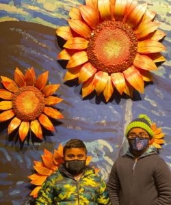 Sculptures of Van Gogh’s sunflowers are arranged around the entryway along with large-scale murals of his works, making for some awesome photo ops.