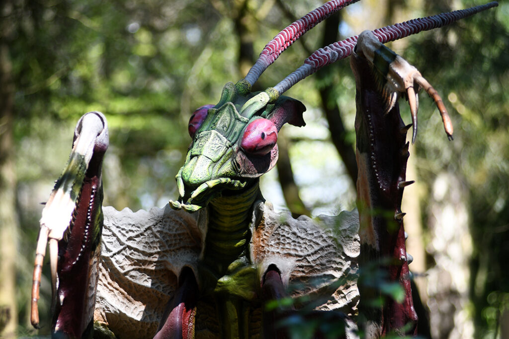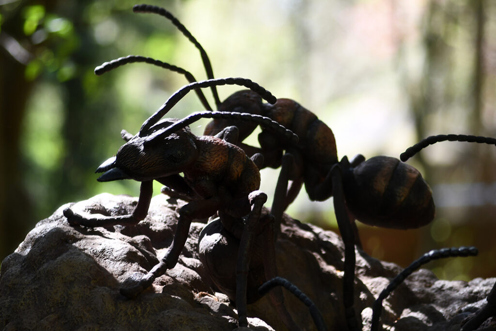 The heart of the bug exhibit is located in the zoo’s Discovery Loop; zoo regulars will remember that’s the same place where the dinosaur exhibit was held two years ago. At the Discovery Loop entrance, instead of a Brachiosaurus, you’re greeted by an emperor scorpion with a 15-foot-tall tail. Next up: black garden ants, a Devil’s Flower Mantis, a Madagascan Sunset moth and a stag beetle.