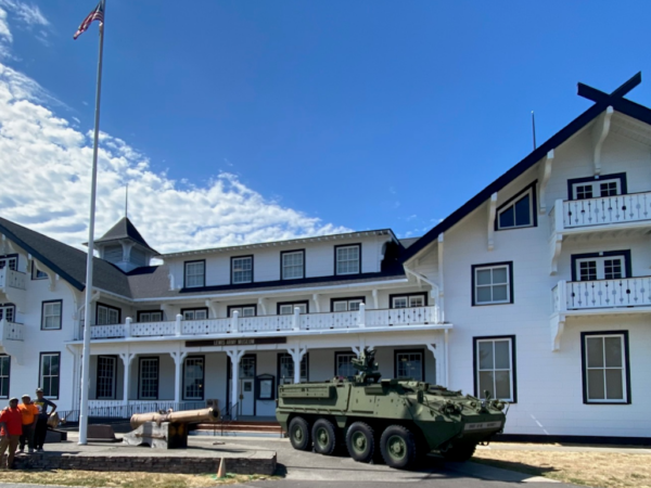 Dating back to WWI and originally built by the Salvation Army to house family and friends of those serving at Camp Lewis, the building served as a hotel named the Red Shield Inn. After some time the Inn was used as excess military housing. In the 1970s the building was deemed unsafe and sold to the United States government for $1. The building was then turned into the Lewis Army Museum and entered into the National Register of Historic Places in 1979.