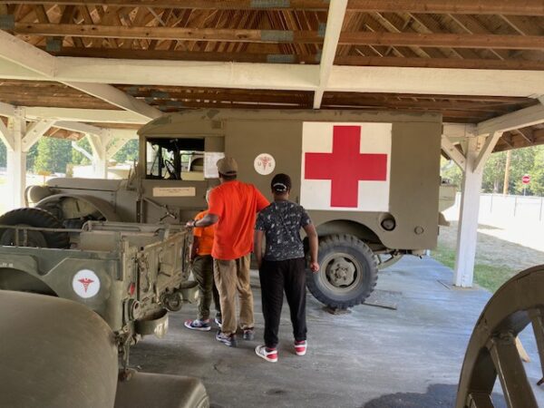 Start in front of the museum building examining the cannons and tank, then head to the row of tanks to the right. Make your way to the backyard where you’ll find even more tanks and other vehicles like the Sherman, self-propelled Arty, Skysweeper, and more. Under cover are more utility vehicles for transportation like Army ambulances, weapons carriers and others.