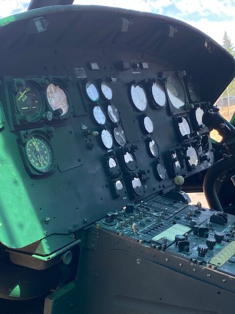 The Iroquois helicopter sits at the Museum