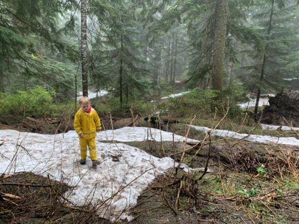 Rain in Seattle can often mean snow in the mountains. This family likes to avoid the crowded sledding hills and head to the forest instead.