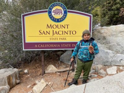 Getting ready to hike Mt. San Jacinto State Park. Take note of the large pine cone in hand. (Image: Jasmin Thankachen)