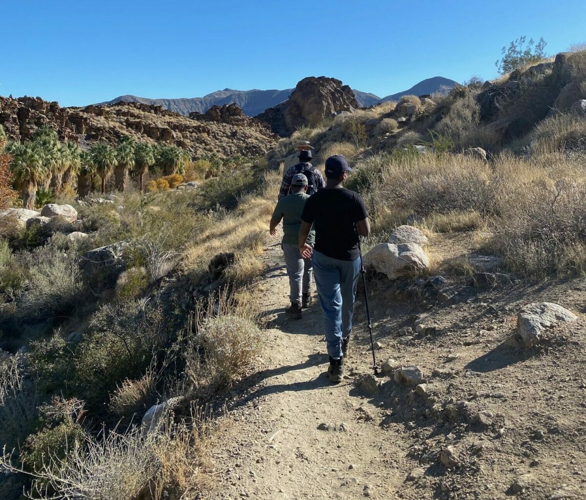 Grab your hats and sunscreen, and head off on a hike through the Indian Canyons. These hikes are best led by a knowledgeable tour guide… preferably in a Red Jeep. We were fortunate to take a hiking tour with Red Jeep Tours and learned so many things about indigenous people and their culture as we traversed the hot, dry trails. We shielded ourselves from the sun underneath the shade of dozens of California fan palms. The California palms grow abundantly throughout the canyons and feed off the water that touches their roots.